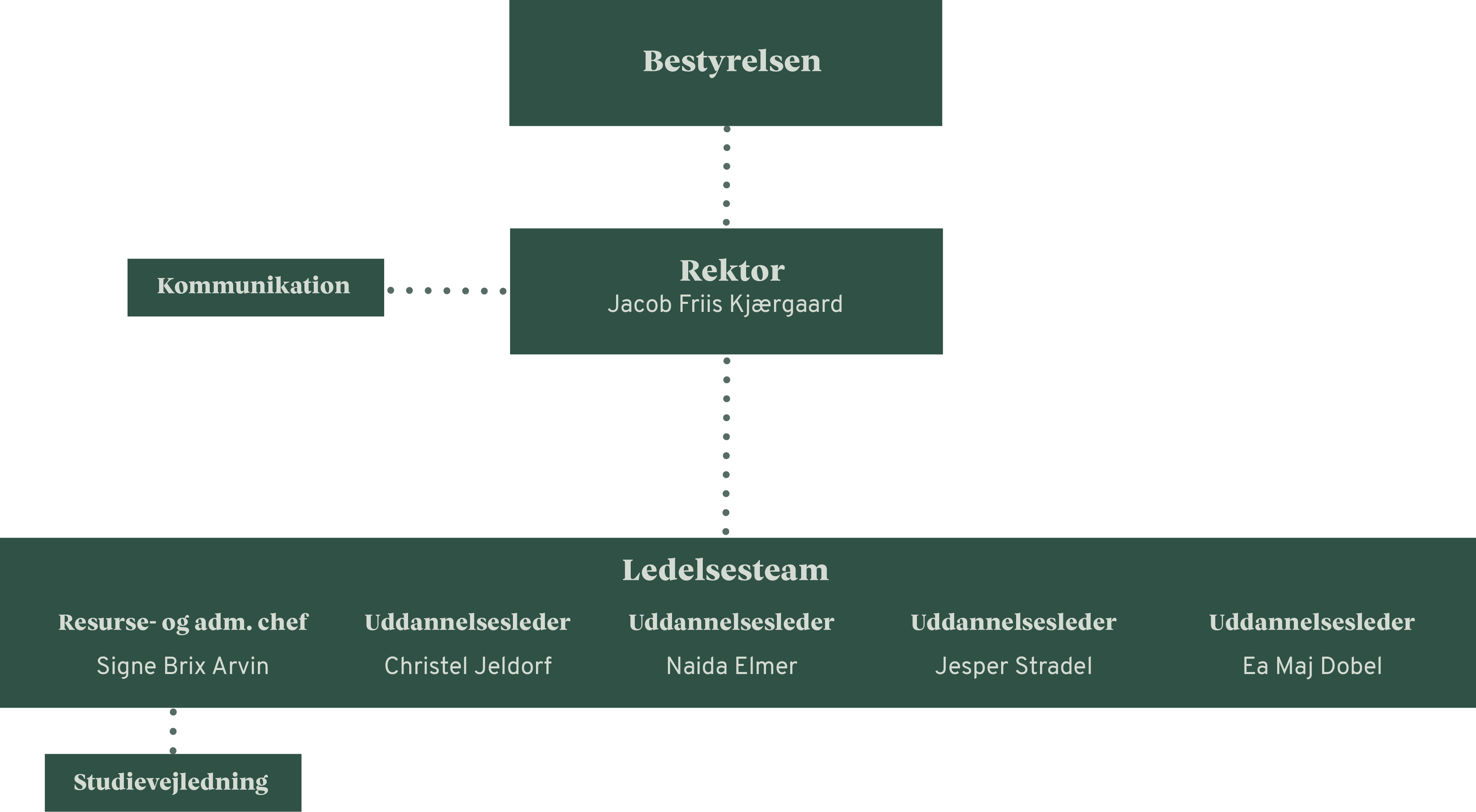 Vores bestyrelse består af to medarbejderrepræsentanter, to repræsentanter fra kursistrådet og seks eksterne repræsentanter:
